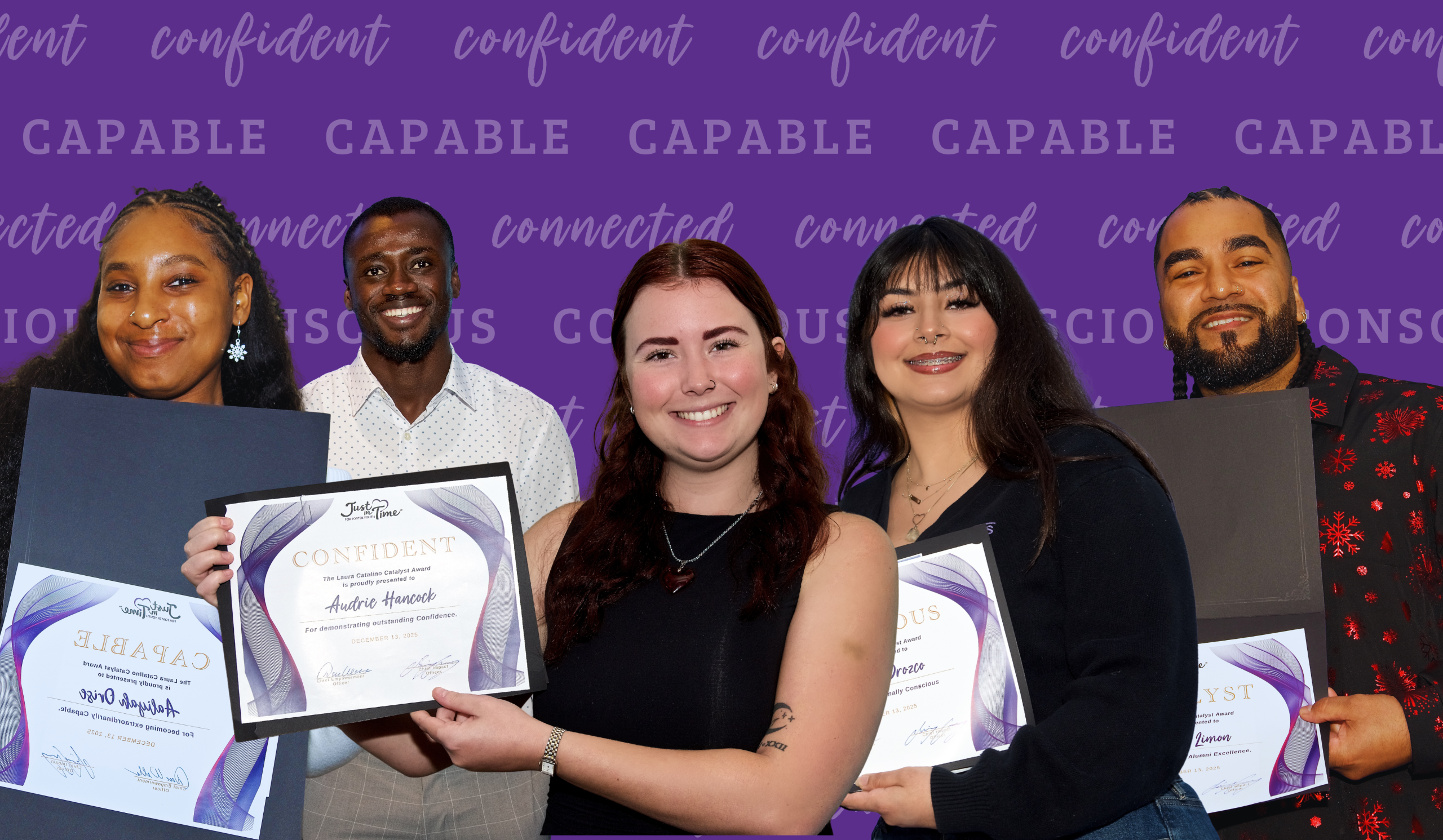 2024 Winners: Hakim Dysart – Catalyst, Karla Miranda – Confident, Kierra Jones – Capable, Deisha Green, Connected, Kory Gonzalez, Conscious Award.
